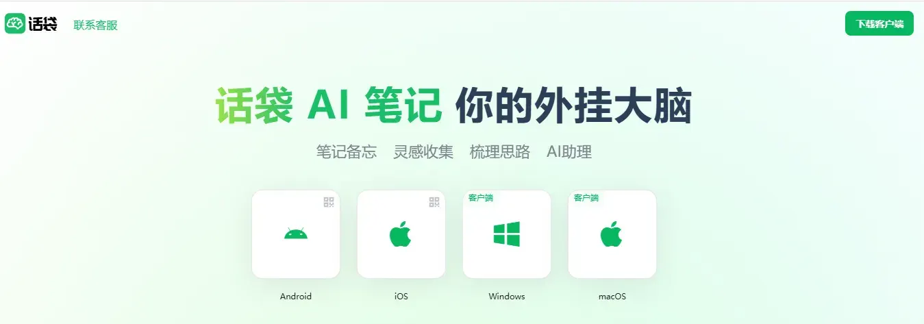 话袋AI笔记不仅功能强大,更以用户为中心,追求的使用体验。它支持全平台下载,让您可以根据自己的喜好和需求,随时随地进行记录与管理。选择话袋AI笔记,就是选择了一个更加智能、更加便捷的信息管理伙伴,让记录变得简单,让生活因智而美。