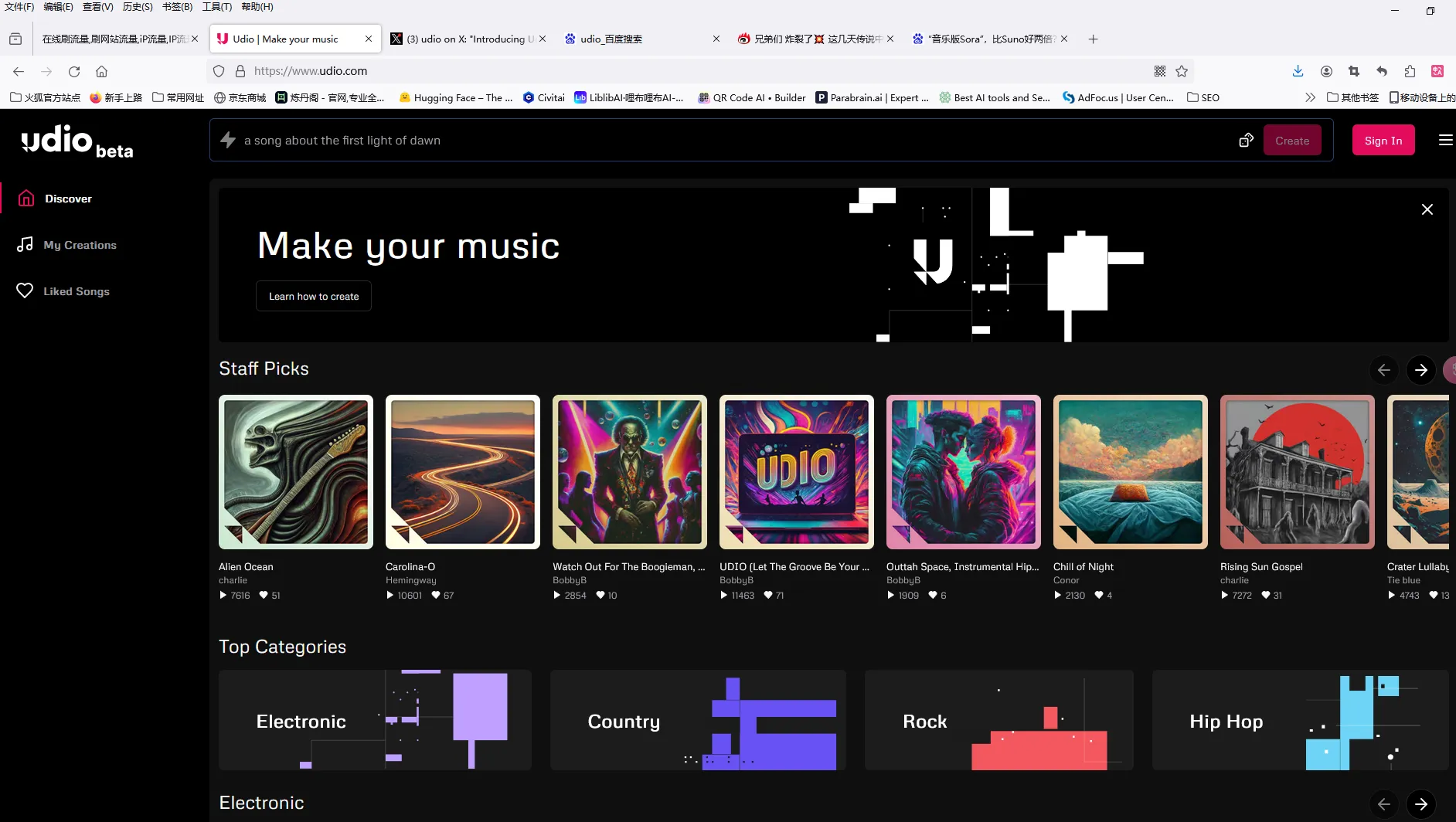 歌曲创作辅助:Udio可以作为音乐人的创作助手,帮助他们快速实现音乐概念,提高创作效率。