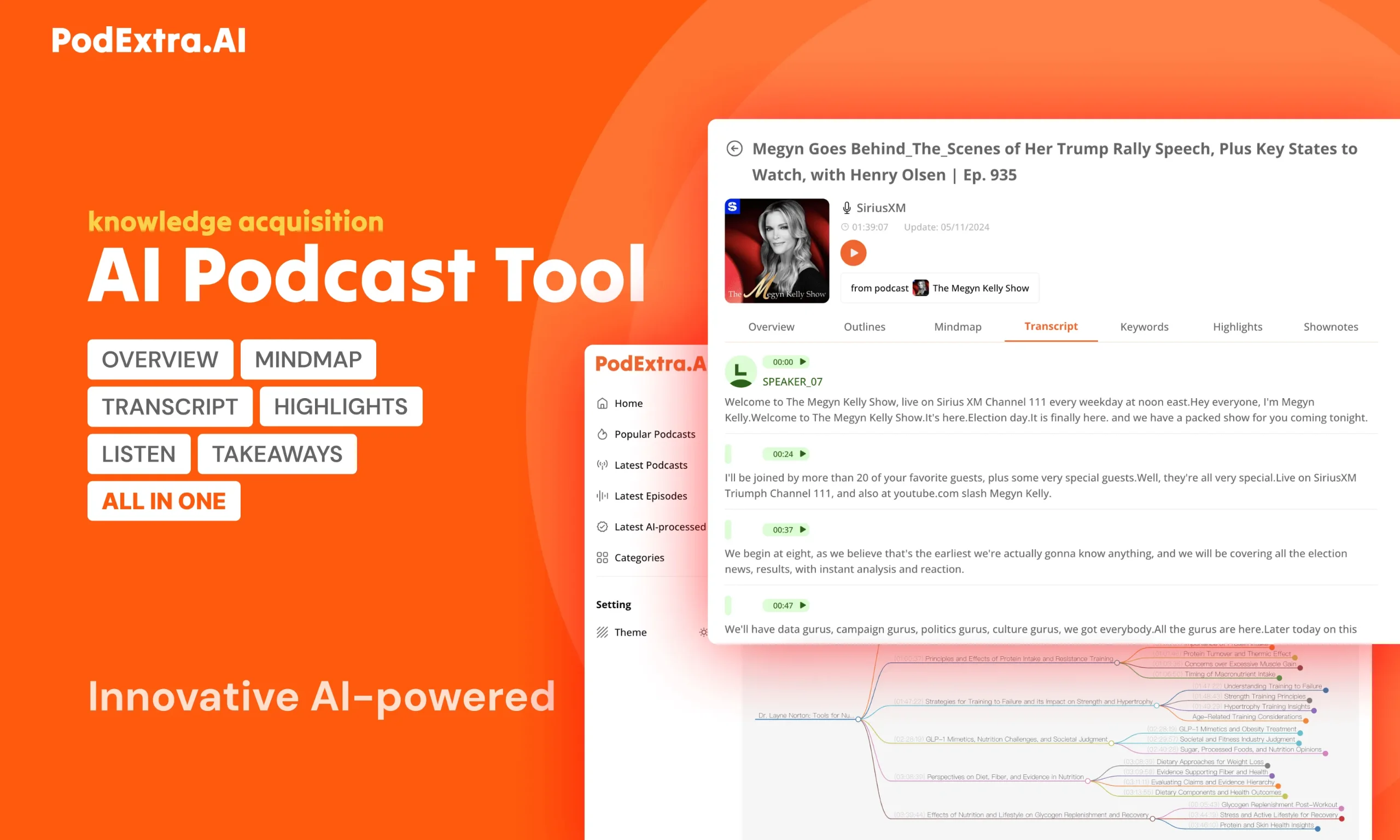 思维导图:根据播客内容自动生成思维导图,帮助用户把握核心观点和结构。