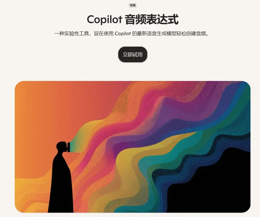 Copilot Labs是微软推出的一个实验性AI中心,旨在邀请用户参与到AI的创新与发展中。这一平台的核心理念是为用户提供实验性的AI工具,并鼓励他们与社区一同塑造Copilot的未来。并且上线了实验性工具“Copilot音频表达”,利用了微软最新的语音生成模型,能够将书面文本转化为自然流畅的语音旁白。