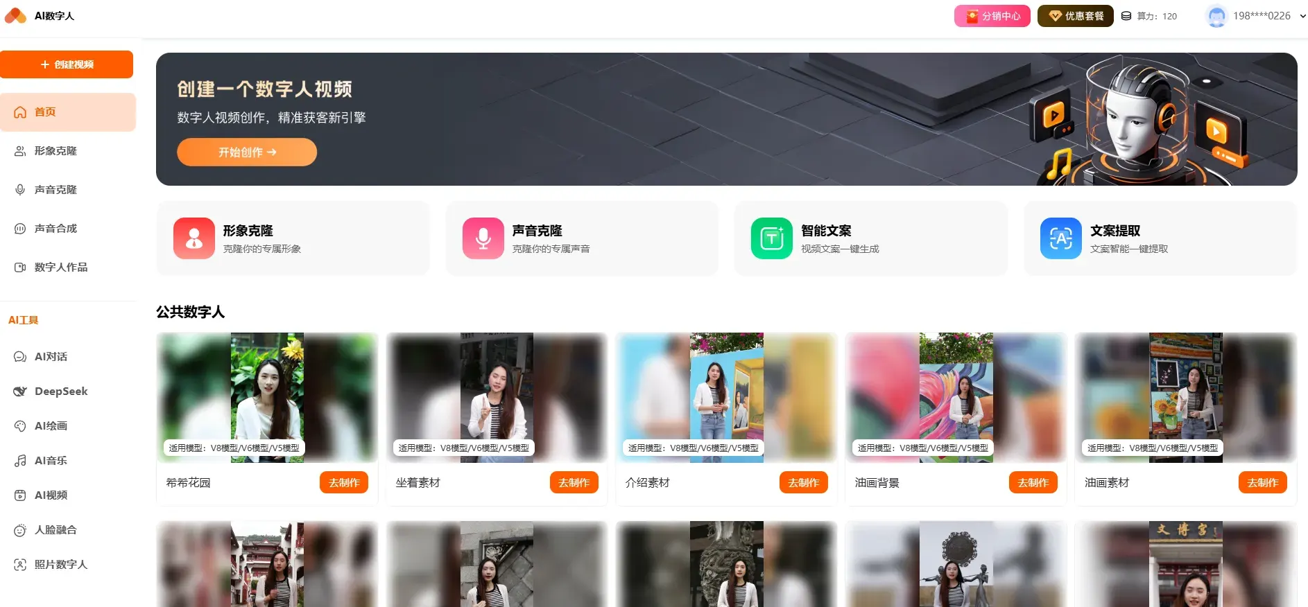 AI视频:AI视频工具结合了形象克隆、声音克隆和文案生成等功能,能够快速生成高质量的视频内容。用户可以上传自己的照片或视频素材,让数字人按照指定的脚本进行表演,生成个性化的视频作品。