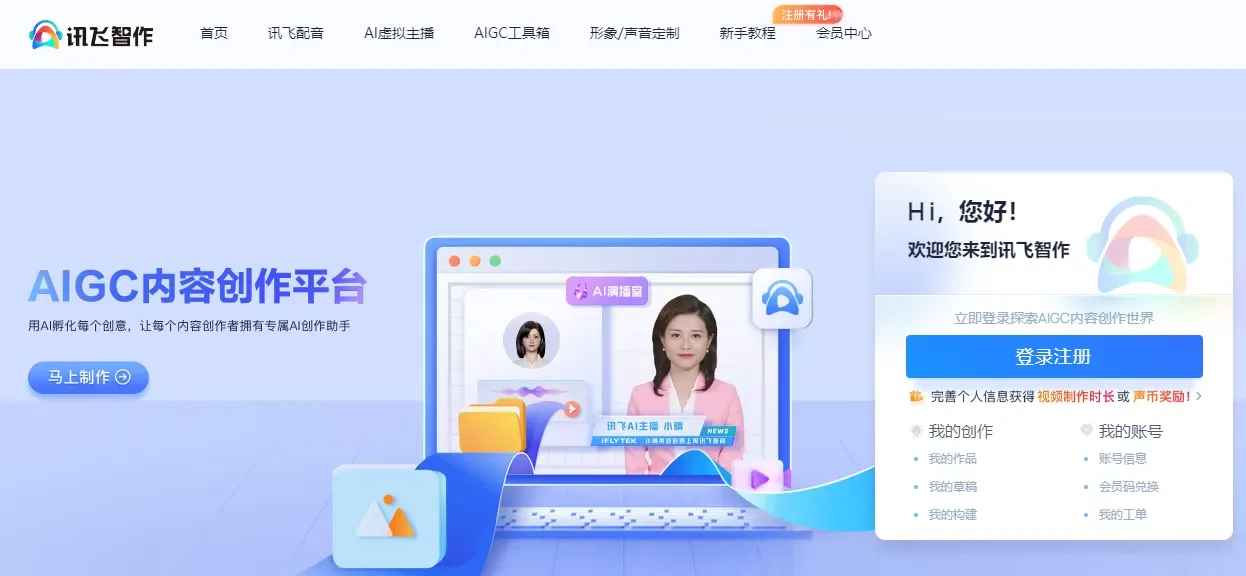 讯飞智作作为一个集成了先进人工智能技术的AIGC音视频制作平台,不仅提高了内容生产的效率,还通过多样化的功能满足了不同用户的需求。它的推出不仅为内容生产者提供了强大的工具支持,也为内容生产者提供更多创新性的体验!