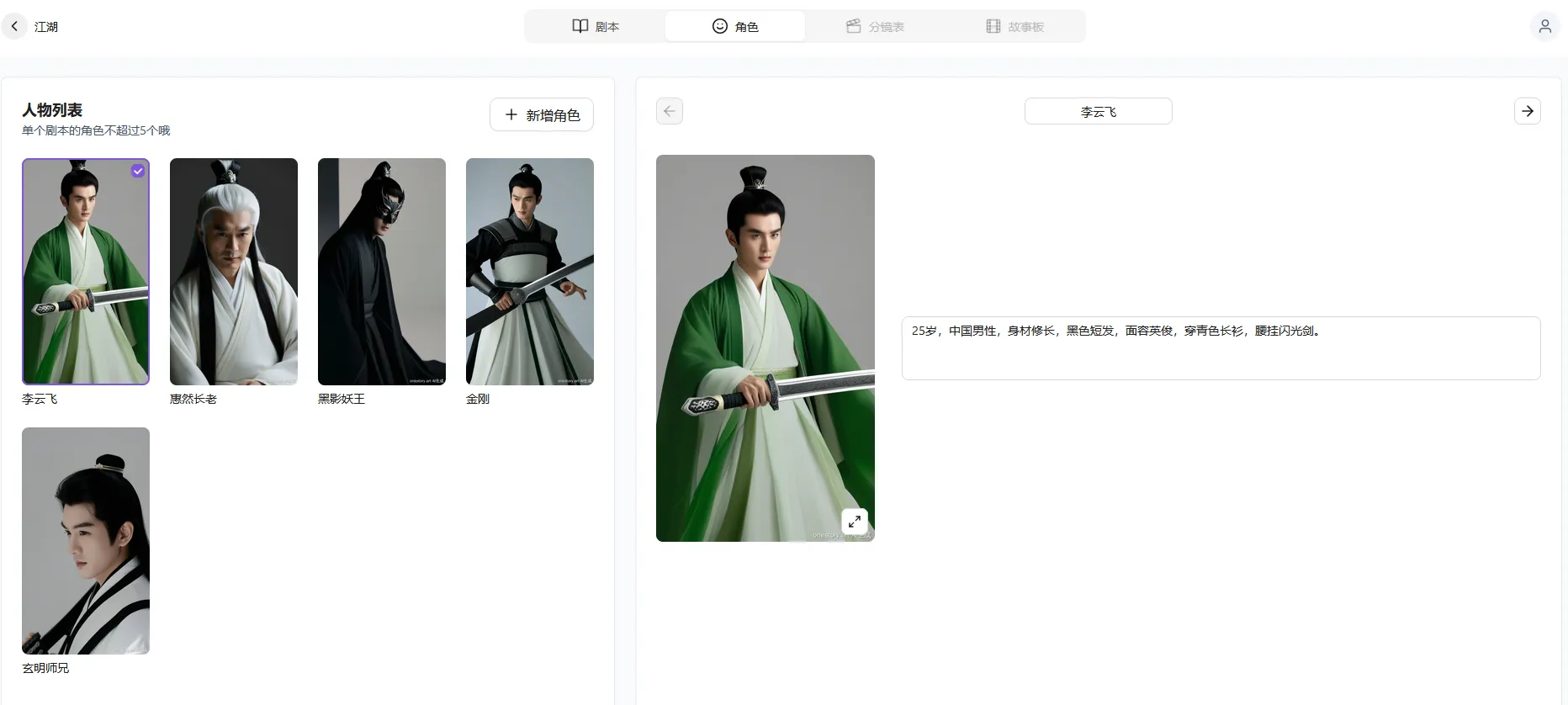 构建角色库并进行编辑。
