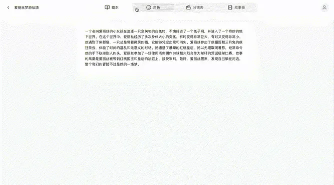 使用AI分析和转化功能生成分镜脚本和故事板。