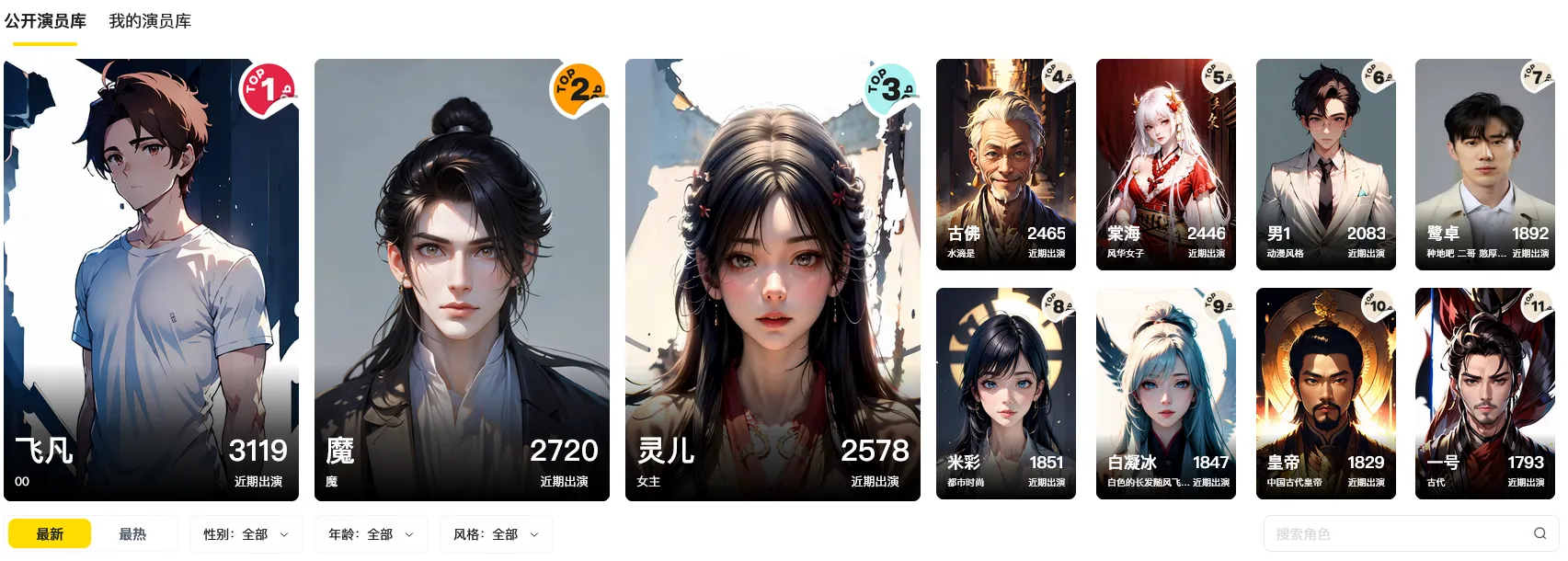海量角色库:包含多种人物形象,用户可自定义角色。