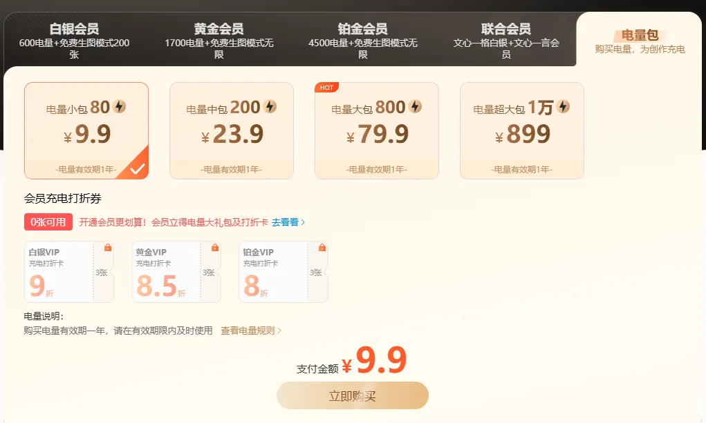 文心一格白银会员 + 文心一言会员 = 99 元/月