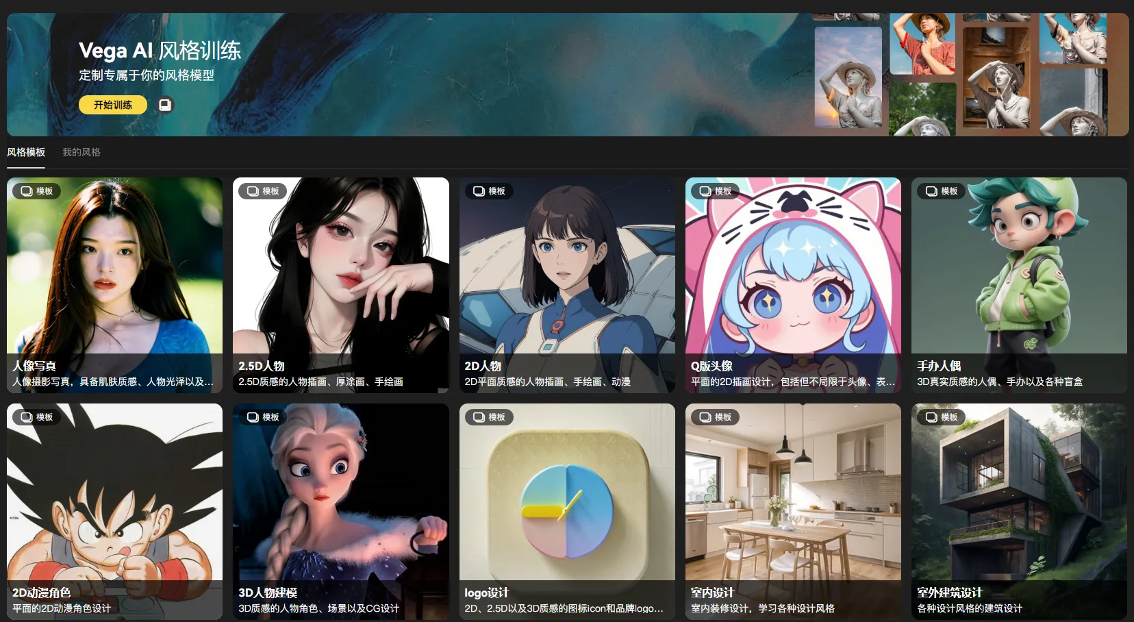 个性化训练:用户可以上传自己的图片,通过在线训练功能,定制个人专属的风格模型。