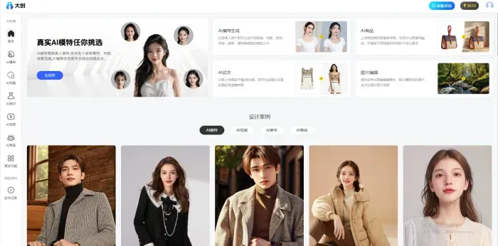 选择功能:在主页左侧导航栏选择需要的功能模块,如AI模特、AI试衣等。