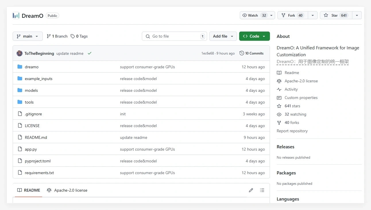 DreamO的推出标志着字节跳动在AI图像生成领域的又一次重大突破。其统一框架、多条件集成、低成本与快速生成等特性,为AI图像定制领域注入了新的活力。随着技术的持续迭代与开源社区的繁荣,DreamO有望成为AI图像编辑领域的重要工具,助力更多用户将创意转化为现实。