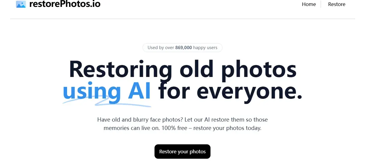 RestorePhotos.io是一款功能强大、操作简便的在线照片修复工具。它利用先进的AI技术和GFPGAN模型,为用户提供了、高质量的照片修复服务。无论是家庭用户、历史研究者、摄影师还是社交媒体用户,都可以通过RestorePhotos.io轻松修复和增强老旧模糊的面部照片,让珍贵的记忆得以保存和分享。
