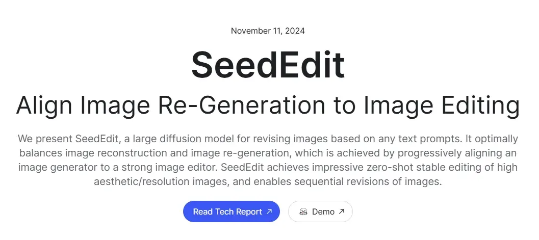 SeedEdit是一款由字节跳动发布的AI图像编辑工具,它允许用户通过简单的文字描述直接对图像进行编辑,无需专业的图片处理技能。SeedEdit由豆包大模型团队开发,旨在彻底改变用户编辑图像的方式,使其更加直观和简单