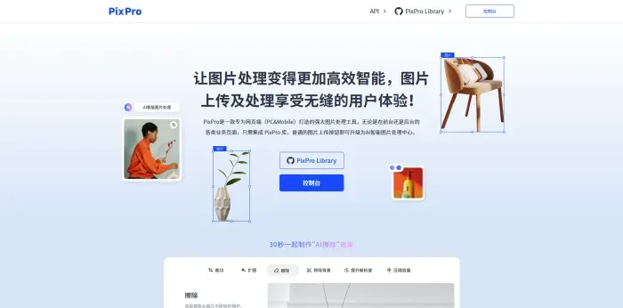 3.快速嵌入与集成:PixPro插件可以在任意web端快速嵌入,网站一键升级即可拥有AI图片处理能力。这种快速集成的特性,使得用户无需下载和安装额外的软件,即可实现无缝的图片编辑体验。