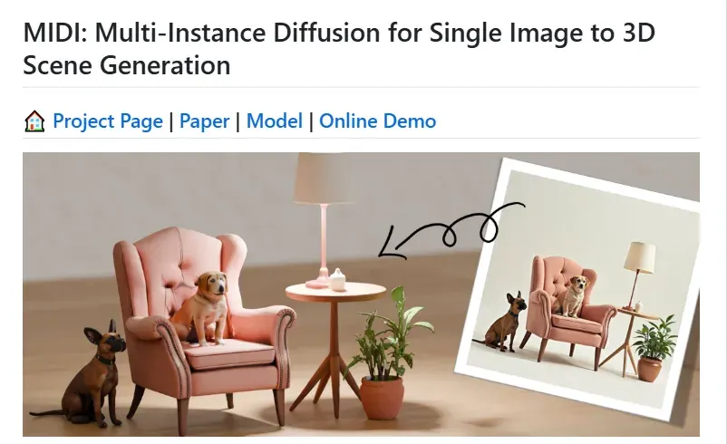 在数字化时代,我们时常被二维照片中的美景所吸引,渴望能够身临其境地探索那些迷人的画面。如今,这一愿望正逐步变为现实。来自CVPR2025的重磅研究——MIDI(Multi-Instance Diffusion for Single Image to 3D Scene Generation,多实例扩散单图到3D场景生成)技术,以其独特的魅力和强大的功能,为我们打开了一扇通往三维*的大门。