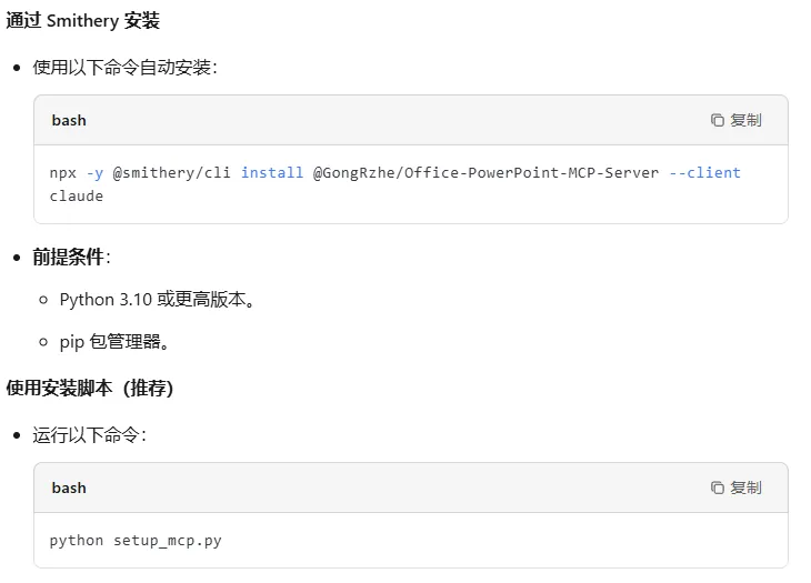 降低使用门槛通过MCP协议与AI助手无缝对接,用户可通过自然语言指令完成复杂操作,无需编程基础。例如,非技术人员也可使用该工具生成专业PPT。