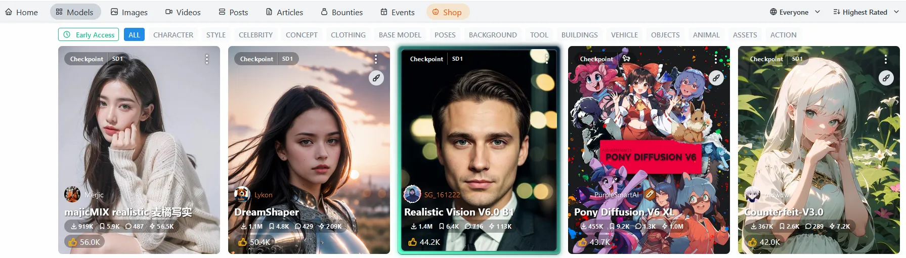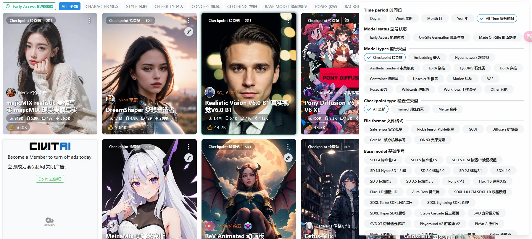 Civitai平台的模型主要分为以下十四类: