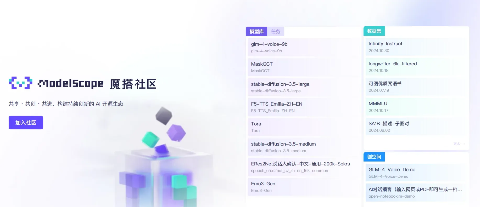 云生态集成:ModelScope与阿里云等云产品结合,提供算力支持,促进社区的快速发展。