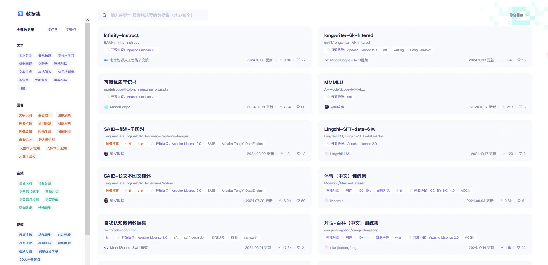 这些数据集覆盖了多模态学习、安全对齐、数学问题解答、多语言处理等多个领域,为AI研究和应用提供了丰富的资源。通过ModelScope社区,研究人员和开发者可以方便地获取和使用这些数据集,以推动AI技术的发展和创新。