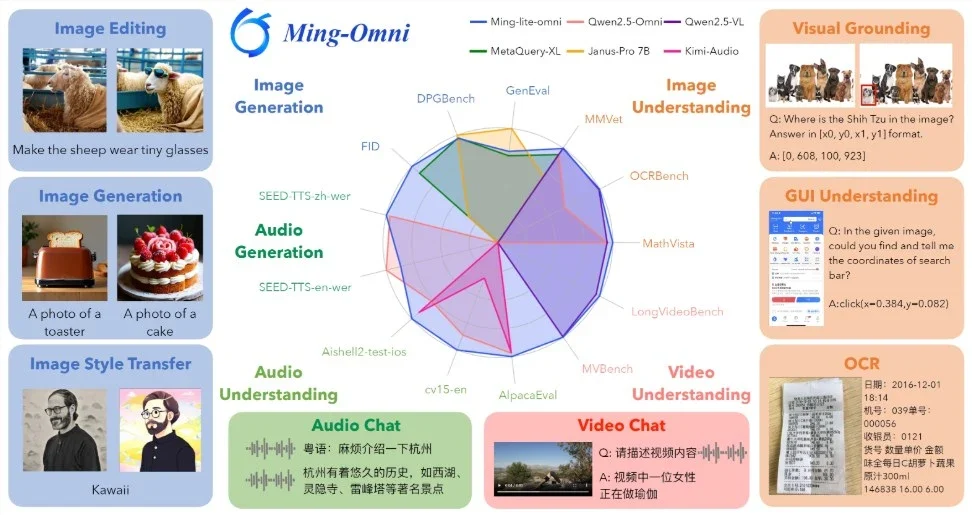 开源生态的推动者Ming-Omni是*在模态支持上与GPT-4o匹敌的开源模型,其代码和模型权重已公开,旨在激励社区的进一步研究与开发,推动多模态智能技术的进步。
