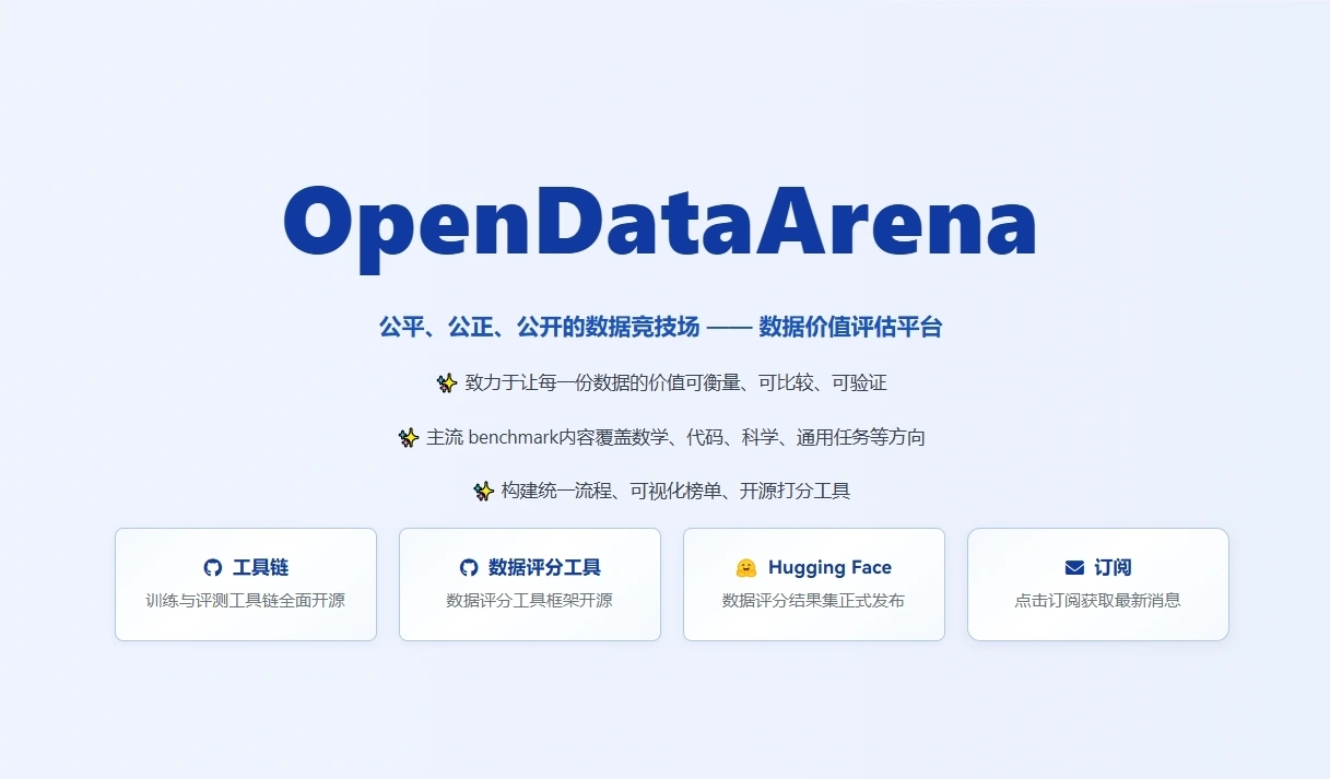 官网:OpenDataArena官网提供平台介绍与榜单查看。