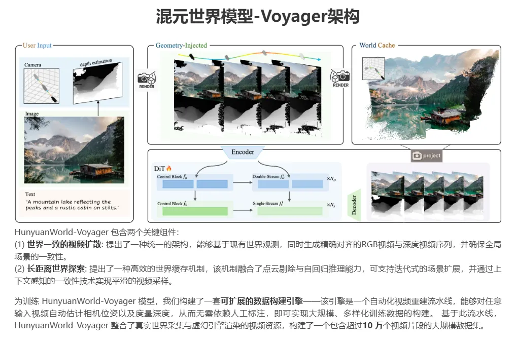 Lite版本扩展:继7月发布的1.0 Lite版后,Voyager进一步优化推理速度,支持实时3D场景生成。