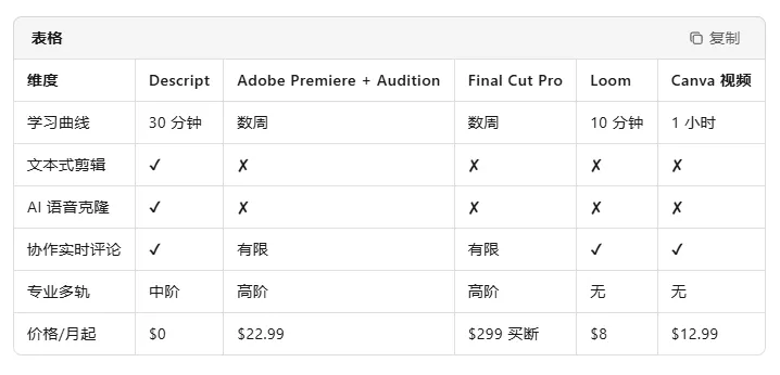 Descript 把“音视频剪辑”从专业技能降维到“打字+点鼠标”,让内容创作者把时间花在创意而不是轨道上。