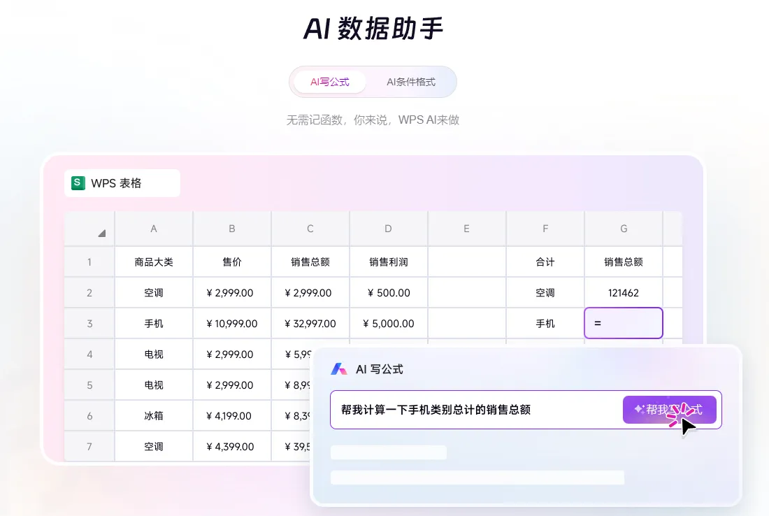 无缝集成:与WPS Office软件的无缝集成,确保了用户在使用文档编辑、表格处理、演示制作等功能时,能够便捷地调用AI助手。