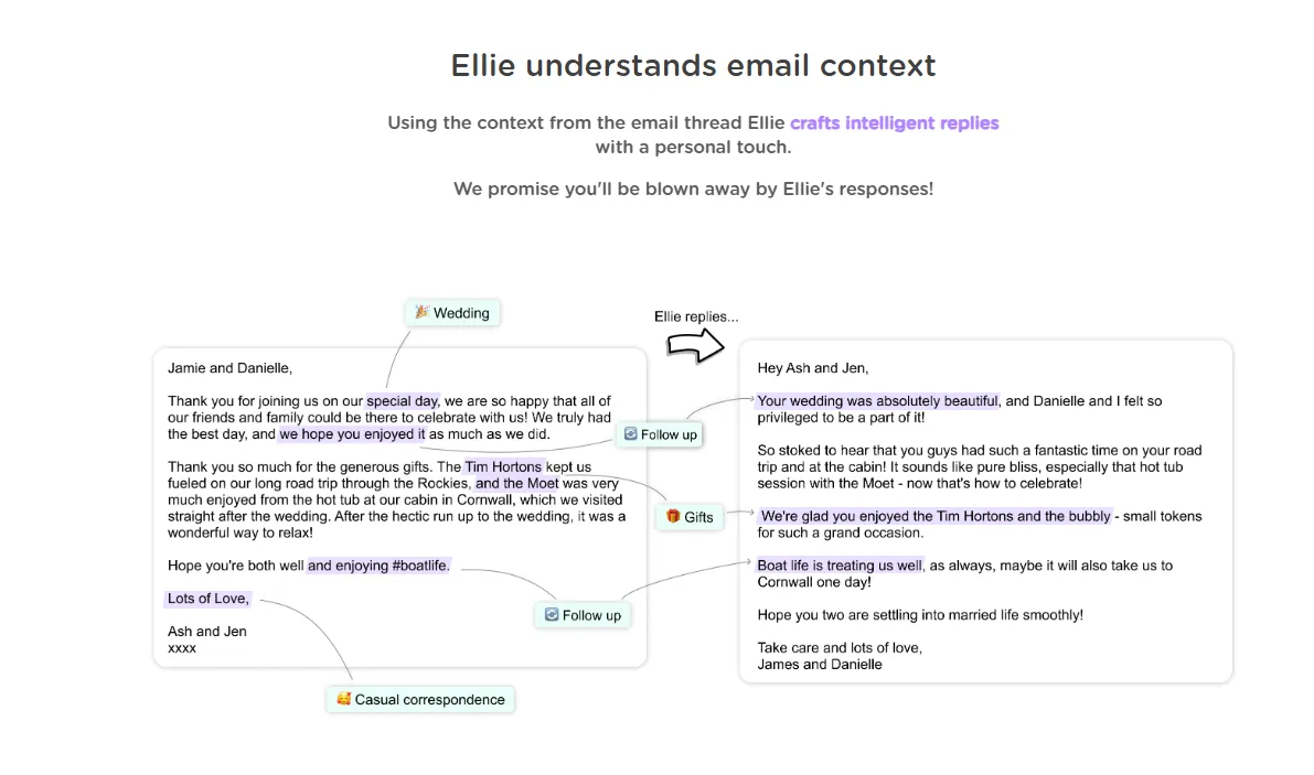 提供上下文:在Ellie撰写邮件时提供额外的上下文信息,以获得更的回复。