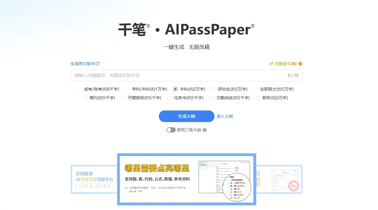 访问官网:首先,访问千笔AI论文的官网,选择符合自己学位教育阶段的选项,如专科、本科或研究生。