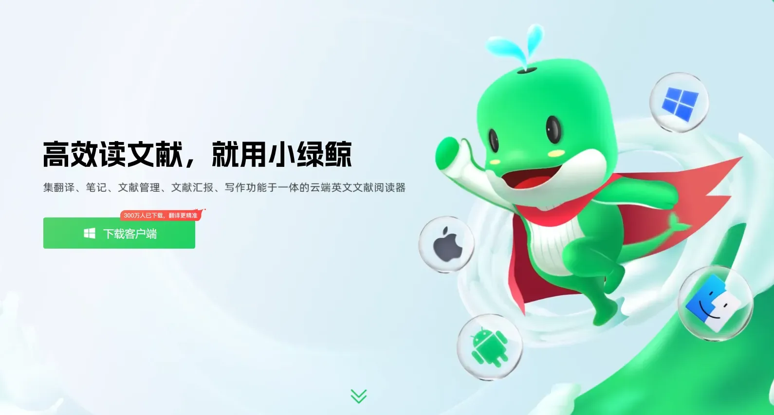 小绿鲸是一款集翻译、笔记、文献管理、文献汇报、写作功能于一体的云端英文文献阅读器。自2021年8月上线以来,它凭借强大的功能和便捷的使用体验,迅速积累了超过300万的用户。它支持平板及电脑客户端,数据实时同步,无论科研人员身处实验室、办公室还是家中,都能随时随地无缝衔接文献阅读工作,打破了时间和空间的限制。