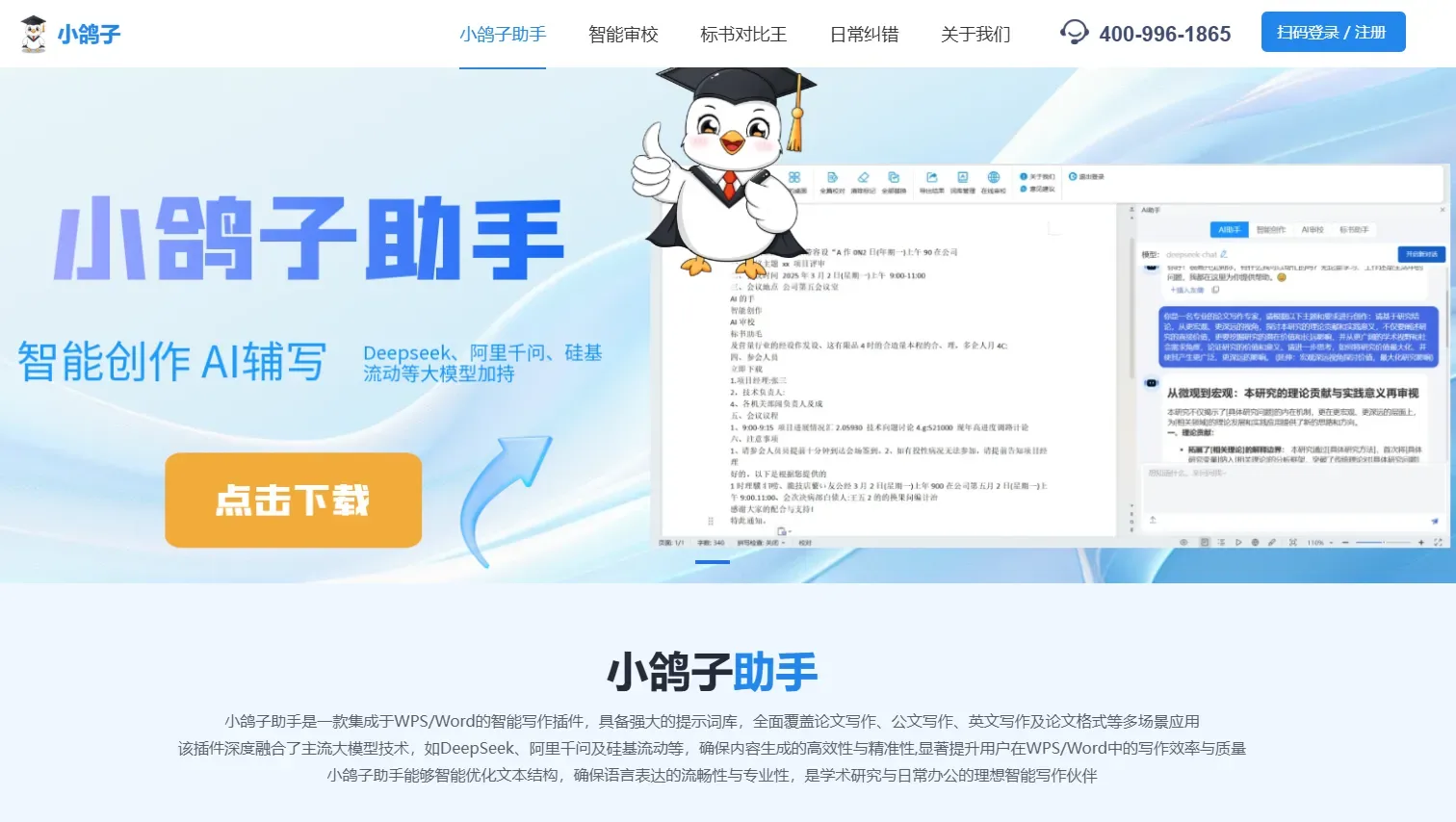 小鸽子助手是北京合正云计算科技有限公司开发的一款集成于WPS/Word的智能AI写作插件,它正以“全场景覆盖+深度AI集成”的特性,成为职场人、学生、创作者等群体的效率神器。这款免费集成于WPS/Word的工具,通过整合Deepseek、阿里千问、硅基流动等主流大模型,将写作效率提升500%以上,彻底告别灵感枯竭与重复劳动。
