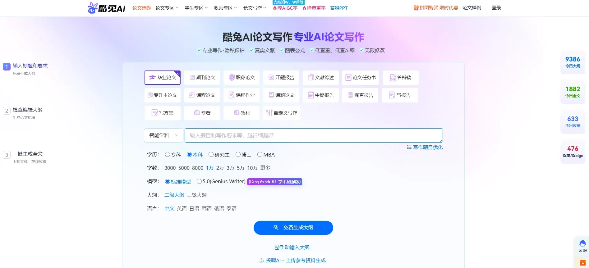 本科生/专科生:10分钟生成5000字课程论文初稿,知网查重率稳定在10%以下
