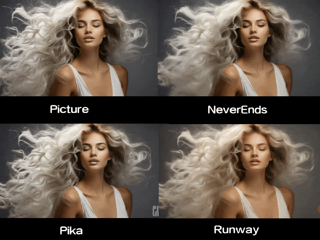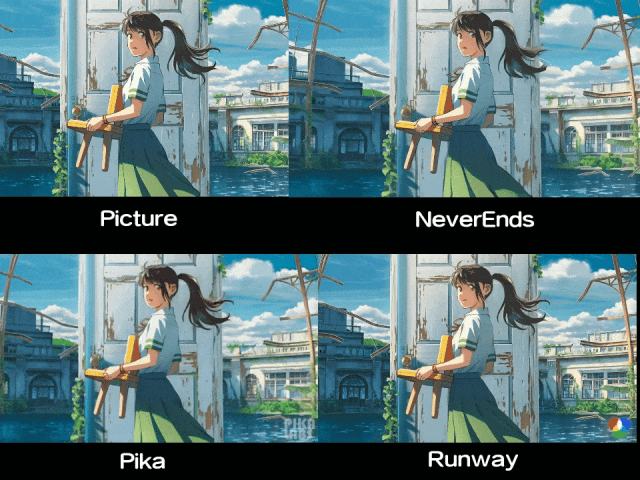 依次测试顺序为原图、NeverEnds、Pika、Runway