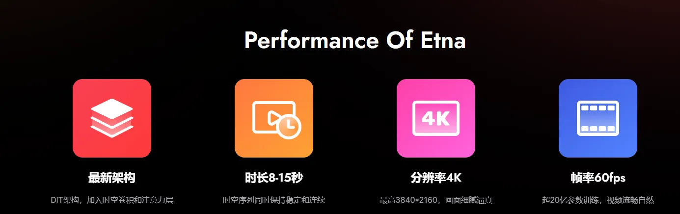 性能提升:相较于前代模型,Etna在视频时长、语义理解、清晰度等方面都有显著提升。