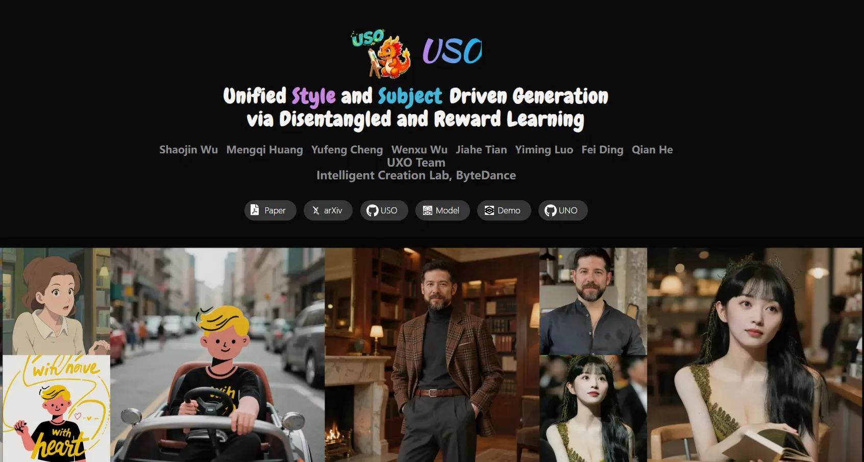 USO(Unified Style-Subject Optimized)是字节跳动UXO团队推出的内容与风格解耦与重组统一框架,旨在打破传统图像生成中"风格迁移牺牲主体一致性"的局限。该框架通过创新的技术架构,实现了任意主题与任意风格在任意场景下的自由组合,生成兼具高度主体一致性、强烈风格保真度与自然视觉效果的图像。