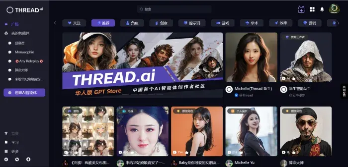 THREAD.ai 是一款开创性的国民级AI创作产品。0代码、0编程,普通人也可以创造属于自己的款AI应用!你也可以拥有自己定制的虚拟女友、动漫IP、超级工作助理。