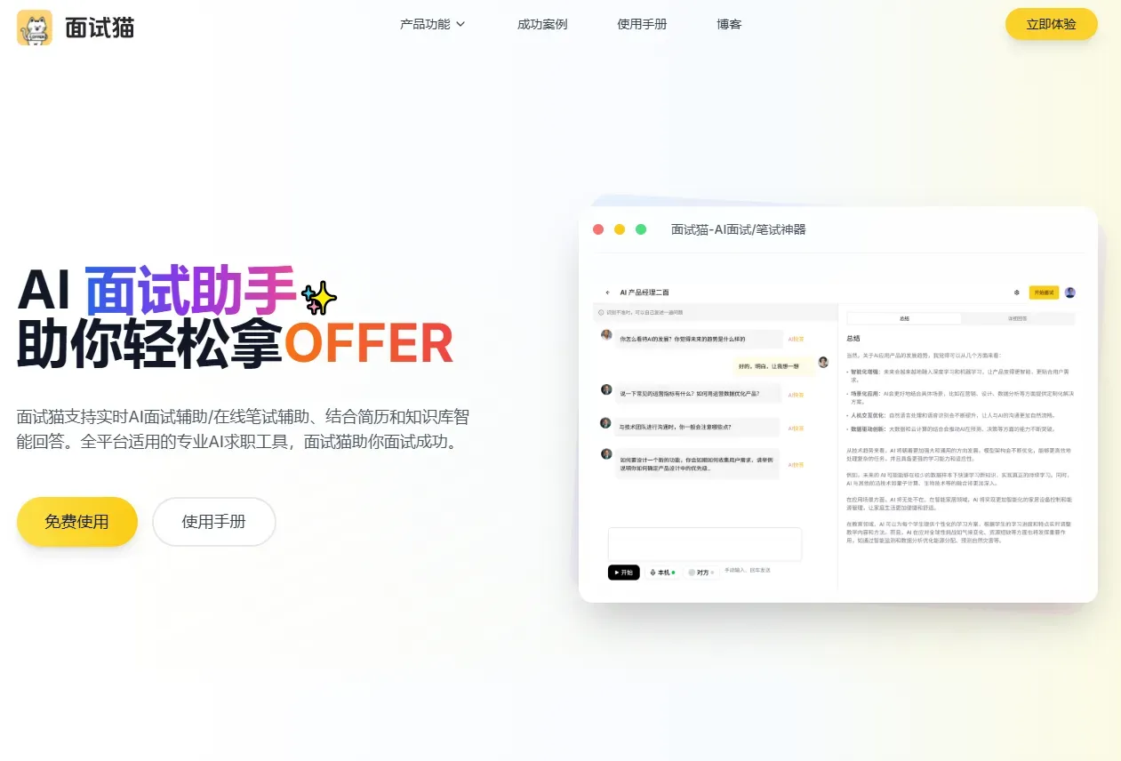 初入职场者:面试猫的模拟练习和实时辅助功能可以帮助初入职场的求职者更快地适应面试环境,积累面试经验。同时,定制化知识库功能使得求职者的回答更加贴合个人经历和目标岗位要求,提升面试成功率。