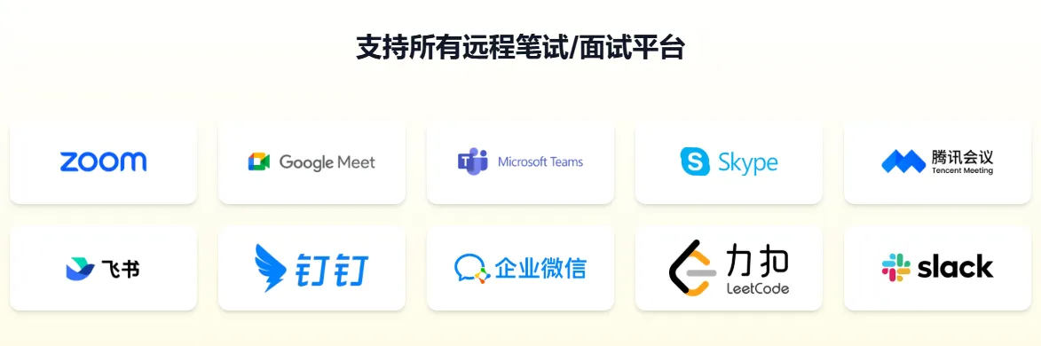 全平台兼容:面试猫无缝兼容主流视频会议平台,如Zoom、腾讯会议、飞书、Teams等,无需额外配置即可直接开启辅助训练模式。这一设计使得求职者可以在任何线上平台都能稳定使用面试猫,提升面试准备的便捷性。