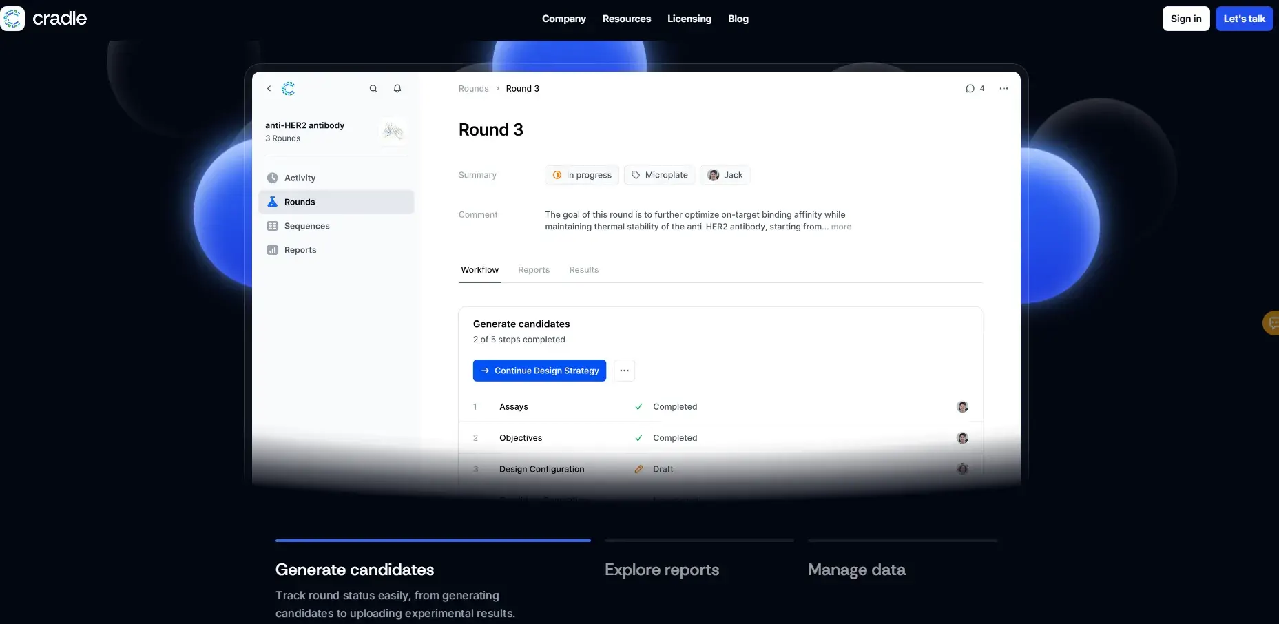 全链路追踪:从候选生成 → DNA 订购 → 实验 → 数据回传 → 下一轮更新,全部在 Web 工作台完成。
